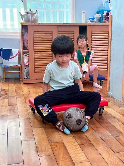 大肌肉遊戲-球要夾住不可以掉喔!