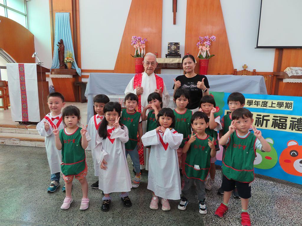 開學祈福禮-與神父、園長媽咪大合照~